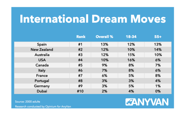 Según comenta el CEO de la compañía, Angus Elphinstone, “nuestra encuesta muestra cuáles serían los destinos con los que los británicos soñarían mudarse, pero aún así hay un 16% que no se moverían de Reino Unido. Las distintas opciones y paisajes de este país hacen entender por qué su destino soñado seguiría siendo este y no querrían moverse a ninguna parte”.