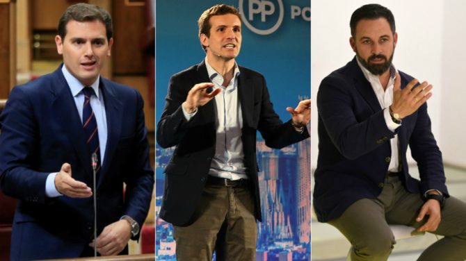 Enfrente, Pablo Casado, Albert Rivera y Santiago Abascal se quedan muy lejos de la mayoría necesaria para investir a un presidente del Gobierno; la horquilla se mueve desde los 151 hasta los 161 escaños, lo que supone que en el mejor de los casos necesitarán quince votos más en el Congreso y, en el peor de los escenarios, 25 diputados más. Una inmensidad.