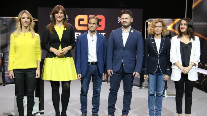 La lista auspiciada por Puigdemont y la liderada por Junqueras evitaron la batalla televisada que mantienen a diario en el Govern. Prefirieron emplearse con la candidata popular. Borràs volvió acusarla de «buscar la foto de la UAB» -e incluso de nacer, supuestamente, en Argentina- mientras Rufián mostraba una fotografía con las cargas policiales del 1-O. «Viva la Guardia Civil», respondió Álvarez de Toledo y culminó citando, en TV3, el discurso que el Rey pronunció el 3 de octubre.