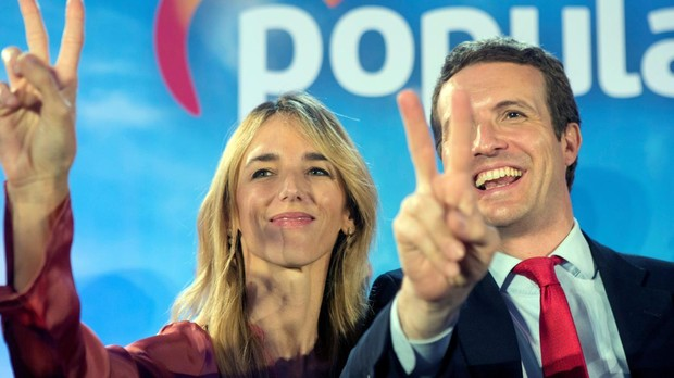 Cayetana Álvarez de Toledo y Pablo Casado, durante la campaña electoral