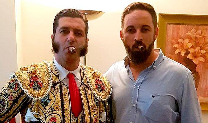 El torero Morante de la Puebla y Santiago Abascal, líder de Vox, ambos fumando un puro.