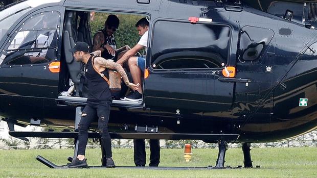 Hasta allí llegó en su helicóptero este domingo Neymar para entrenarse, acompañado de algunos de sus compañeros en la selección como Daniel Alves, Thiago Silva, Lucas Paquetá y Arthur.