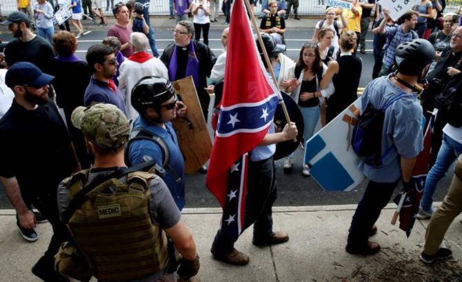 Pero si no son más inteligentes no lograrán nada, marchar con la bandera confederada y la esvástica es servir en bandeja su propia cabeza a los medios progres para que los crucifiquen