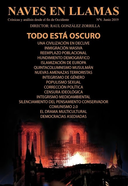 Bajo el título genérico de “Todo está oscuro”, el más reciente número de Naves en Llamas se abre con un artículo en profundidad del historiador David Engels, dedicado en esta ocasión a explorar las razones por las que es posible afirmar que el mundo occidental puede ser considerado como una “civilización en declive”. Además, los periodistas y analistas de Naves en Llamas repasan en profundidad cuestiones como el rapidísimo reemplazo poblacional que se está viviendo en el viejo continente, la islamización de Europa país por país, el quintacolumnismo musulmán y las nuevas amenazas terroristas.
