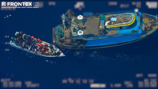 Inmediatmente, el pesquero se alejó del lugar, al mismo tiempo que la pequeña embarcación comenzó a dirigirse hacia la isla italiana de Lampedusa. Un avión y un dron de Frontex siguieron observando el barco pesquero con los migrantes durante varias horas, alertando a las autoridades italianas y maltesas, así como a la EUNAVFOR Med.