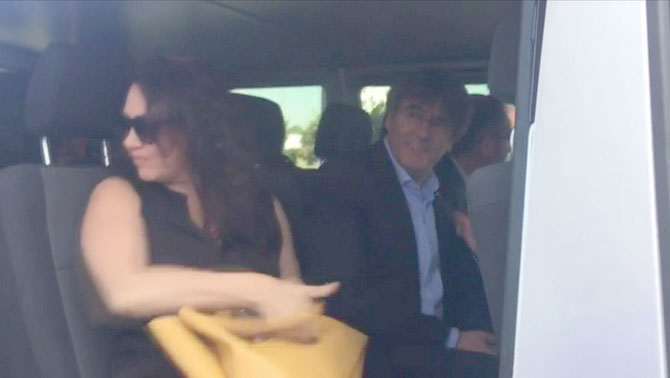 Puigdemont, con su mujer, a pocos kilómetros del Parlamento europeo (Tv3)