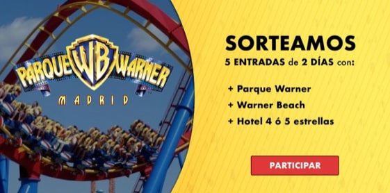 El primero de los premios, incluirá 5 entradas combinadas para visitar el Parque Warner Madrid y su parque acuático, Warner Beach, durante dos días para cualquier fecha hasta final de la temporada. Además, el ganador también podrá elegir entre una estancia de hotel, para él y sus cuatro acompañantes o 5 Fast Pass o Pases Correcaminos, para sacarle el máximo partido a su visita y no tener que esperar colas.