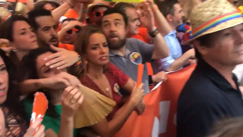 Arrimadas defendida de los lanzamientos que recibían los líderes de Ciudadas en el Orgullo 2019.