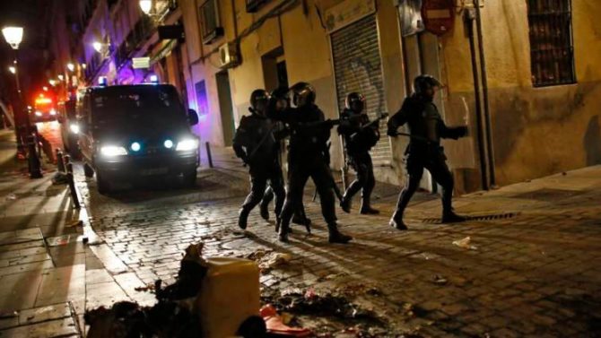 LR.- Agentes antidisturbios de la Policía Nacional se vieron obligados a actuar la noche de este viernes en el barrio de Lavapiés a raíz de una batalla campal que se produjo entre argelinos y senegaleses con motivo de la final de la Copa de África.