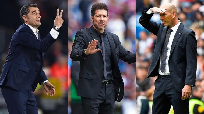 El Fc Barcelona, por ejemplo, tiene en Valverde un técnico metódico que prefiere que el equipo esté bien entrenado físicamente para poder desplegar en el terreno de juego un 4-3-3 o un 4-4-2 que puedan ir cambiando según la ocasión. El técnico de origen extremeño, que afrontará su tercera temporada al mando del conjunto blaugrana, tendrá como gran reto el de hacer rendir de la mejor manera a Luis Suárez, Lionel Messi y Antoine Griezmann, el último gran fichaje por parte del presidente Josep María Bartomeu. No va a ser fácil hacer coexistir a estos tres cracks, ya que el francés en los últimos años ha jugado desbordando desde la derecha, algo que suele hacer el capitán argentino del Barça. La opción de poner a Griezmann de extremo izquierdo es una de las más viables, aunque de esta manera el francés podría mermar su influencia en zona de gol.