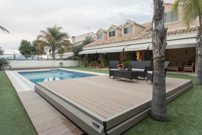 Gracias a que permiten que se pueda caminar sobre la plataforma y colocar mobiliario de una forma totalmente estable y segura, este tipo de cubiertas se pueden utilizar como terraza durante los meses en los que no se utilice la piscina. De esta manera, permite ahorrar espacio e incomodidad, tapando la piscina de una forma discreta y elegante. Además, este tipo de cubiertas garantizan la máxima seguridad y limpieza del agua de la piscina, ya que durante gran parte del año la mantiene totalmente tapada.