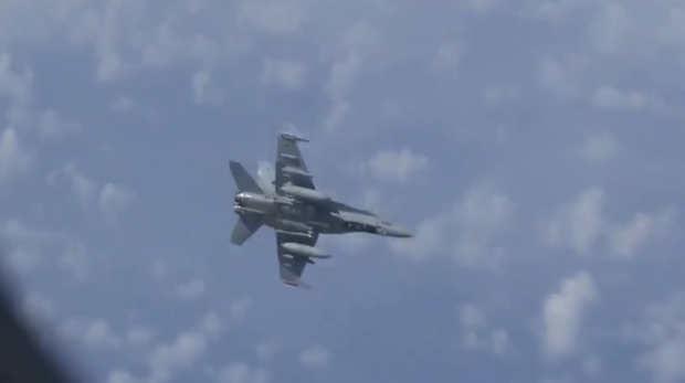 Un caza español F-18, del Ala 12, y dos aviones de combate rusos Su-27 han tenido un «roce» sobre el mar Báltico, según ha difundido el Ministerio de Defensa ruso en un vídeo.