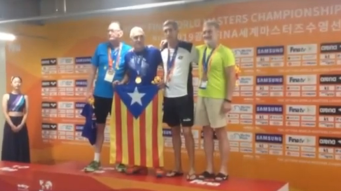 Un exnadador olímpico español celebra su oro con la bandera estelada
