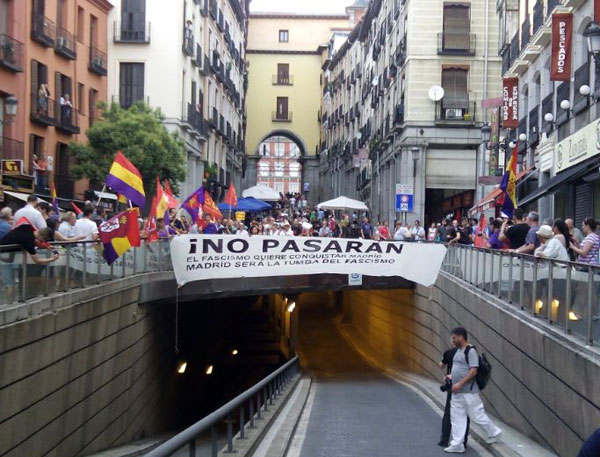 Por Laureano Benítez Grande-Caballero (Extraído del libro “El Himalaya de mentitas de la memoria histórica”) Reconozco que, visto el tétrico panorama de esta España gótika creada a golpe de aquelarre y pucherazo, pocas giliprogresías me pueden impactar y hacer que el rictus del pasmo y estupor asomen a mi rostro: he visto desde un fuck police grafiteado en una pared, hasta el odioso refugees welcome, entre otras comancherías varias. Mas hace unos días, paseando por Madrid, vi la joya de la cornamenta de Lucifer, esa piedra que dicen que cayó de su frente cuando se rebeló contra Dios: era un cartel de gran tamaño donde se decía aquello de «No pasarán: Madrid será la tumba del fascismo». Im-presionante.