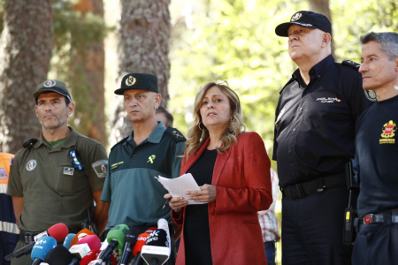 La delegada del Gobierno en Madrid dando una rueda de prensa junto a responsables del dispositivo de búsqueda