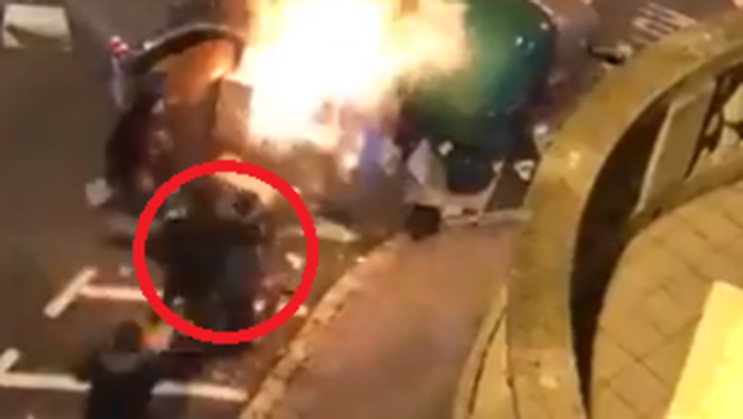 En el vídeo, grabado desde el balcón de una vivienda, se puede observar cómo los radicales independentistas rodean al hombre que porta un extintor, se lo quitan y le tiran al suelo donde comienzan a propinarle varios golpes. Los manifestantes habían sido dispersados de la Delegación del Gobierno de Cataluña, donde se habían enfrentado a los Mossos y la Policía, lanzándoles todo tipo de objetos.