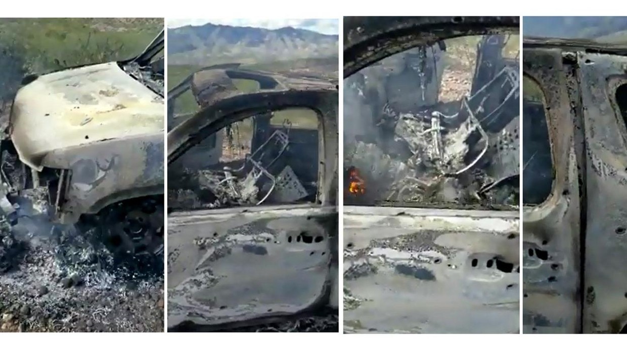 Imágenes del coche incendiado donde murió una familia mormona