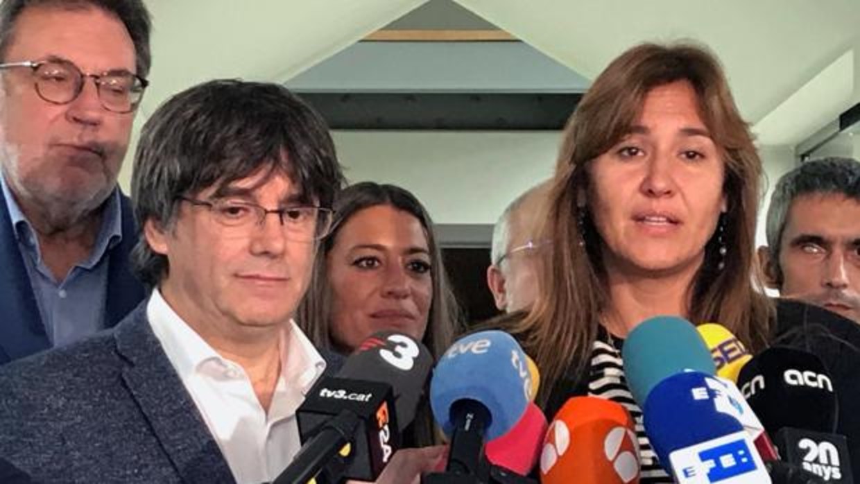 El expresidente de la Generalitat Carles Puigdemont y la número uno al Congreso por Barcelona, Laura Borràs (d), hacen declaraciones tras reunirse en Waterloo – Alerta Digital