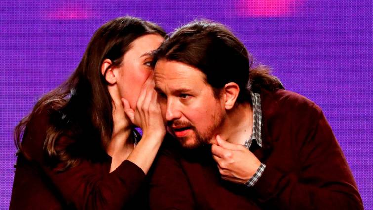 Irene Montero junto a Pablo Iglesias en un acto de cierre de la pasada campaña