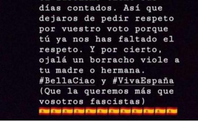 Además de todo lo que se le imputa a este hombre, no olviden que desear la violación de una mujer siempre es machismo y violencia contra la mujer. Esto proviene de la izquierda, los mismos que dicen ser feministas.