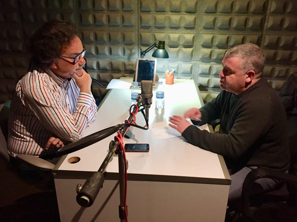Pablo Barrón, a la izquierda, delegado de AD en Galicia, entrevistando al juez José Antonio Vázquez Tain