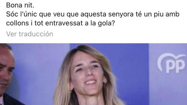 «¿Soy la única persona que ve que esta señora tiene un pene con cojones y todo atravesado en la garganta». El teniente alcalde y concejal de Cultura de la localidad valenciana de Ador, Ángel Mascarell, se expresó en estos términos este jueves en la red social Facebook en un comentario sobre una foto de la portavoz del Partido Popular en el Congreso, Cayetana Álvarez de Toledo.
