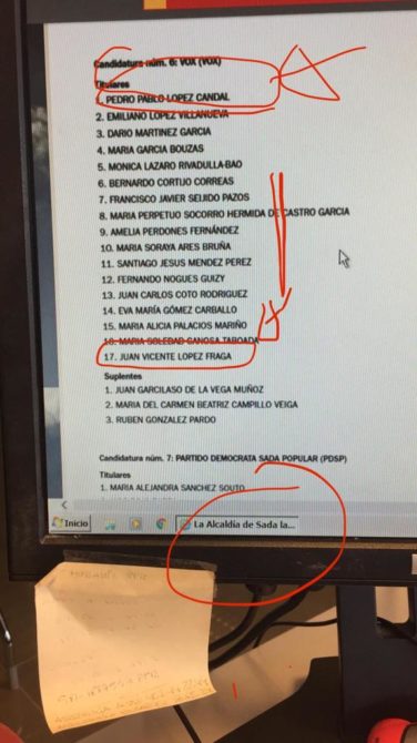 El ansia de querer hacer una lista en Sada- pueblo costero gallego- rápido y corriendo fue el desencadenante de que una de las personas- de la que tenemos constatado su firma falsificada -haya protestado remitiendo un escrito denunciando esta situación ante la Junta Electoral en ese momento, pero fuera de plazo.