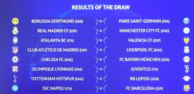 Enfrentamientos de los octavos de final de la Liga de Campeones, según determinó el sorteo realizado este mediodía en la sede de la UEFA, en Nyon (Suiza).