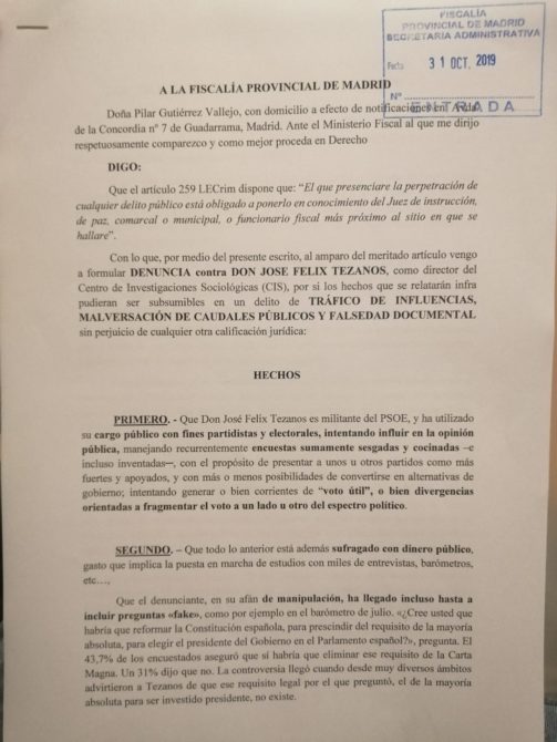 En la denuncia, que Ruiz de Erenchun adjunta en su perfil de Twitter, puede leerse cómo el agente que tomó la denuncia considera que existen «indicios de los que se deduce la participación del investigado en el hecho delictivo».