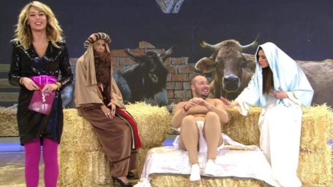 Así, Isabel Rábago se vistió de Virgen María; el colaborador José Antonio Avilés, con una escueta tela a modo de calzón y con el torno desnudo, se convirtió en un «crecidito» Niño Jesús; Marisa Martín-Vázquez fue la encargada, con barba postiza mediante, de encarnar a San José; y los reyes Magos fueron Terelu Campos y Makoke.