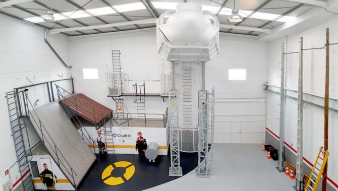 Con el objetivo de que los alumnos puedan beneficiarse de una metodología práctica e inmersiva, las instalaciones destacan por una alta especialización en aquellas actividades de mayor riesgo como las relacionadas con trabajos en altura, espacios confinados o incendios. En esta línea, cabe mencionar los simuladores de espacios confinados, así como la reproducción de un aerogenerador para la impartición de cursos GWO. “La formación GWO es el estándar formativo para las empresas del sector eólico. Actualmente las empresas que ofrecen este tipo de formación simplemente reproducen los trabajos en altura, pero no en un entorno real. Contar con la reproducción de un aerogenerador permite a Cualtis aproximarse fielmente a la realidad que viven los trabajadores en un parque eólico” apunta Laura de Diego, responsable de formación de Cualtis.