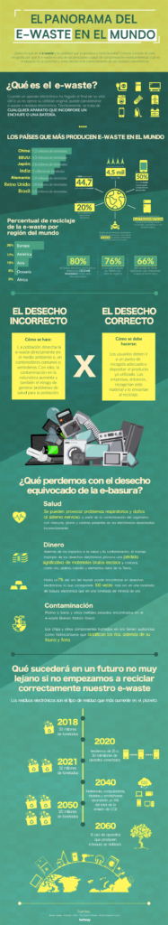 El progreso de la tecnología desde hace unas décadas ha hecho que cada casa o empresa adquiera productos de última generación para realizar sus quehaceres diarios, su actividad profesional o simplemente pasar sus momentos de ocio. A priori, todo progreso es positivo, pero en este caso se deben tener en cuenta otras premisas como qué hacer con los apartaos viejos que ya no se usan por el avance tecnológico o han llegado al final de su vida útil, es decir los e-waste o residuos electrónicos.