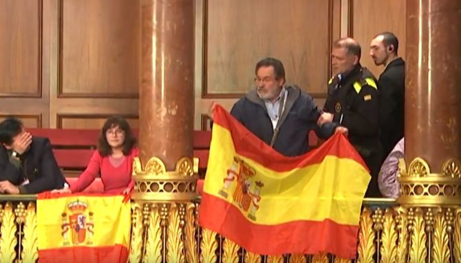 El hombre expulsado del Pleno de Barcelona por exhibir una bandera de España: “Si hubiera portado la del Estado Islámico, Ada Colau no se habría atrevido a echarme”