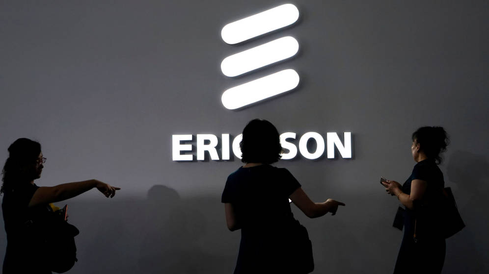 El logo de Ericsson, en la Mobile de Shanghái en 2019.