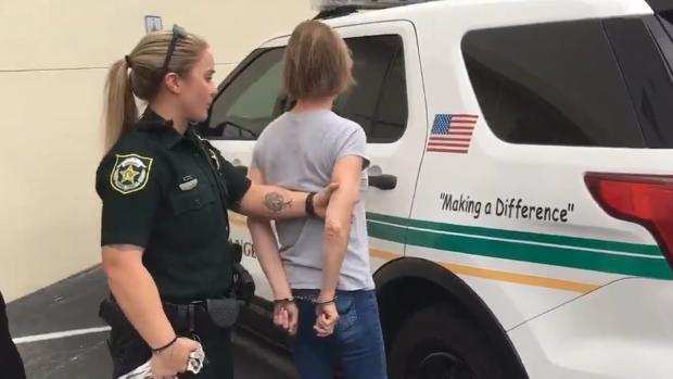 Agentes de la Oficina del Alguacil de Orange, que detuvieron a Boone este martes, dijeron que también se ve en los vídeos a Torres golpeando la maleta y rogando a su novia que le saque.