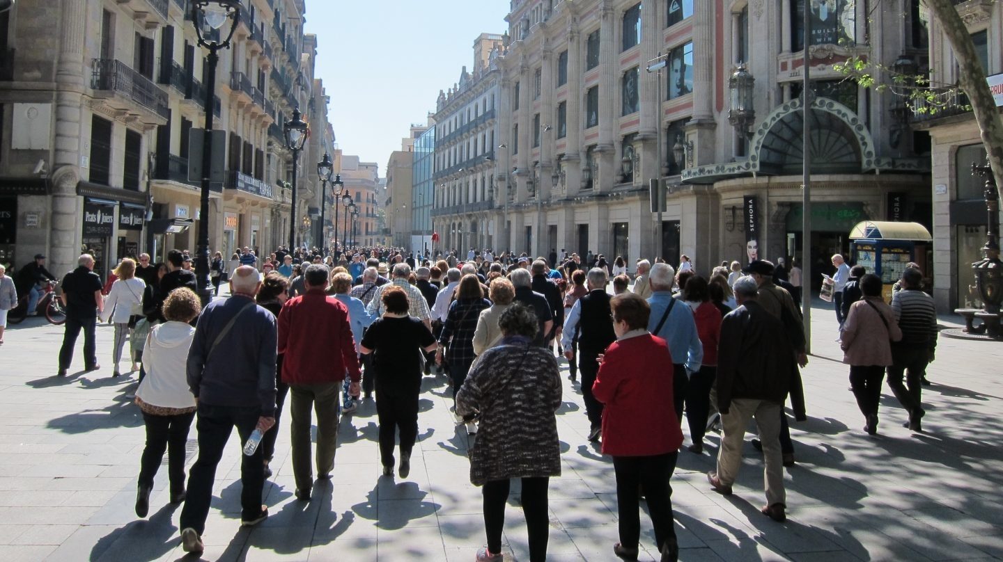 Jubilados paseando por el centro de Barcelona, la ciudad más afectada por la caída de los viajes del Imserso.