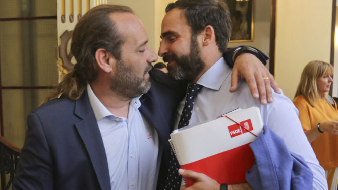 Juan Cassá (izquierda) abraza a Daniel Pérez, portavoz del PSOE, en una imagen de archivo (Málaga Hoy)