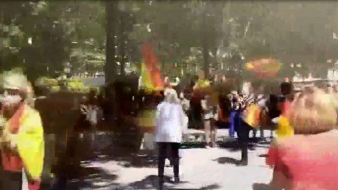 La reacción de un grupo de personas con banderas de España que coge por sorpresa a la Policía Nacional