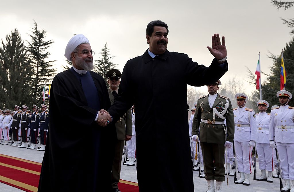 Por Mayid Rafizadeh.- En plena crisis del coronavirus, Irán está sorteando las sanciones norteamericanas y reforzando sus lazos con Venezuela. En la imagen, el presidente de Irán, Hasán Ruhaní (izquierda), y el de Venezuela, Nicolás Maduro, pasan revista a la guardia de honor en el Palacio Saadabad de Teherán, el 10 de enero de 2015. (Foto de Atta Kenare/AFP vía Getty Images)