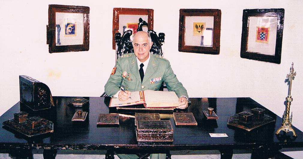 Enrique de Vivero, el día de su despedida como jefe del Tercio Gran Capitán I de La Legión, en Melilla, posa en el despacho que ocupó Franco siendo teniente coronel en dicha unidad.