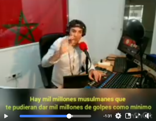 “Para todos los marroquíes, yo no quiero hablar de esta mujer, no quiero bajar a su nivel (…) Hay 1.000 millones de musulmanes que podrían darte mil millones de golpes como mínimo (…) Lo que has dicho merece en otras zonas del mundo, no en Marruecos, cortarla la cabeza”.