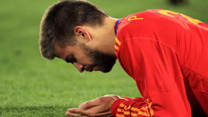 Hace diez años, España estaba en plena disputa del Mundial de Suráfrica, que el 11 de julio terminaría ganando. El diario “L’Esportiu” ha entrevistado a Gerard Piqué, uno de los protagonistas, para recordar alguno de los mejores momentos. En el estreno, España perdió contra Suiza en un encuentro en el que le abrieron la ceja. “En el primer partido me abren la ceja, en el segundo el labio, y al cabo de dos días, en un entrenamiento, me dan un pelotazo en la boca y me abren de nuevo el labio. Recuerdo a Vicente del Bosque diciendo: ‘Pero qué mala suerte que tiene este chico.’ Pero sí: me rompí la cara por España. Viva el rey! Apa, ya tienes el titular. La verdad es que fue un golpe duro perder un partido así, pero nos recuperamos pronto. En un Mundial no puedes tener un mal día y aquel partido lo jugamos bien, dominamos y en la primera que tuvieron, un rebote estúpido y gol”, asegura el defensa del Barcelona. “Yo era literalmente un novato, tenía 22 años, acababa de llegar y mi único objetivo era pasarlo de puta madre. Y disfruté muchísimo. Había muy buen rollo”, continúa hablando sobre un campeonato que le cambió la vida: “Gané el título más grande que uno puede conseguir y conocí el amor de mi vida. Salí de Sudáfrica siendo una persona diferente y viví una experiencia inolvidable. A Shakira la conocí en Madrid antes de ir al Mundial y el primer día le dije que nos encontraríamos en la final; yo siempre valiente. Ella cantaba el himno del Mundial en la ceremonia y yo daba por hecho que jugaríamos aquel partido. Y llegamos al Mundial y empezamos perdiendo el primer partido. Pero bueno, al final ganamos”.