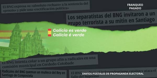 «Los separatistas del BNG invitaron a un grupo terrorista a su mitin en Santiago», «El País Vasco proporciona ideología de género a los futuros maestros» o «Las violaciones aumentaron el 37 % en el País Vasco, con un incremento de la delincuencia del 7,8 %» son algunas de las frases que ilustran los sobres de Vox.