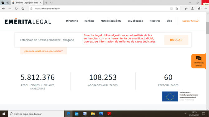 La mercantil “E4LEGAL ANALYTICS S.L.”, conocida como Emerita Legal, analiza sentencias de los tribunales españoles, con un sistema informático basado en algoritmos, a partir del cual clasifica a los abogados en función de sus resultados.