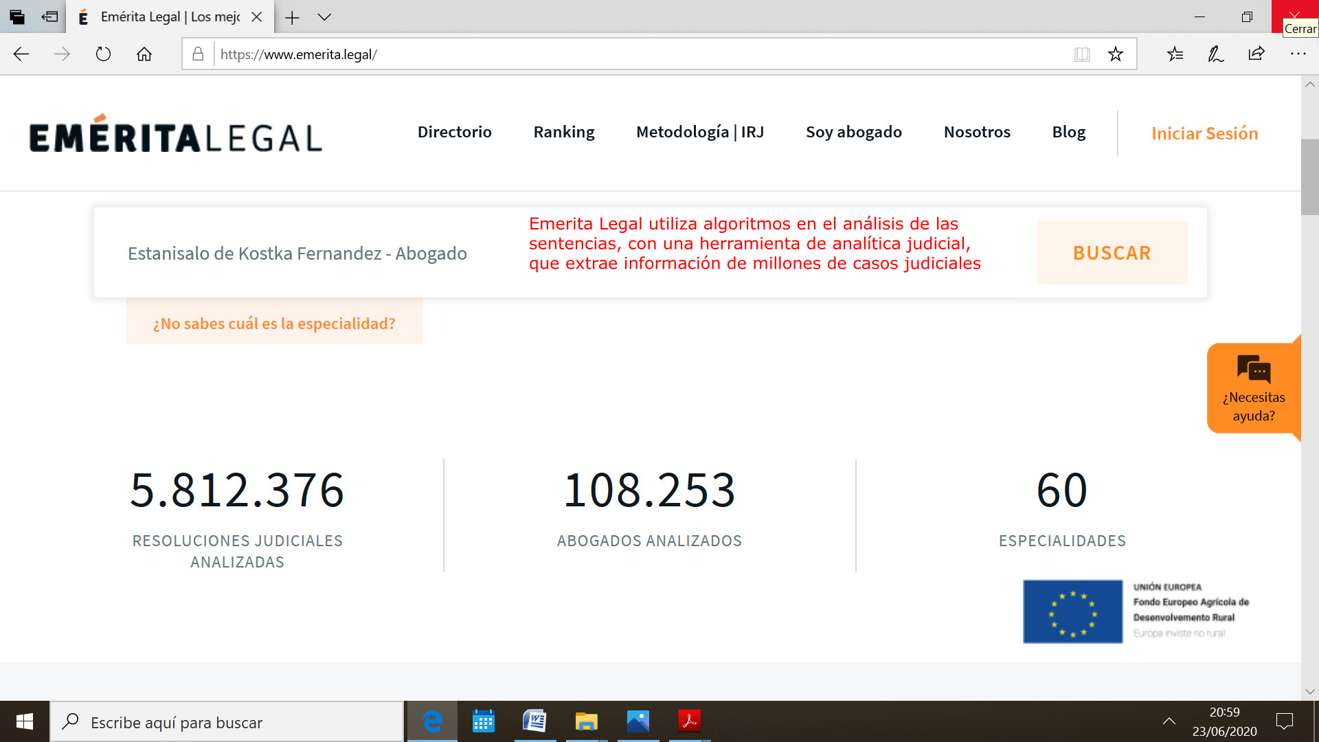 Emerita Legal ha analizado 108.000 abogados, más de 5 millones de sentencias, en 60 especialidades del derecho, y todo ello con el objetivo de que los ciudadanos tengan un criterio objetivo de análisis del abogado que contratan.