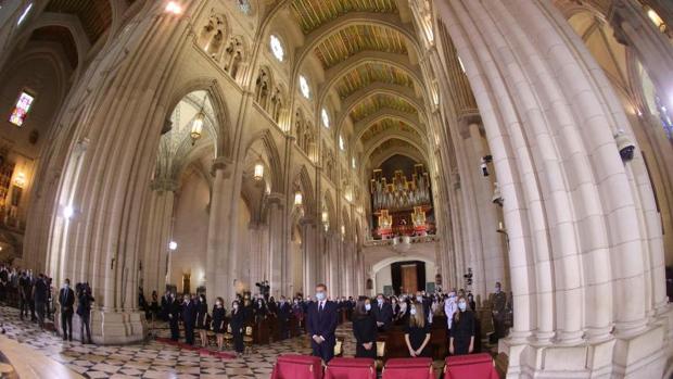 La Iglesia arropó este lunes a las miles de familias que han perdido a sus seres queridos durante la pandemia del Covid-19 como mejor sabe hacerlo: con la oración. «Nos hemos reunido en esta celebración de la Eucaristía para orar por nuestros hermanos que han fallecido durante esta epidemia que aún estamos sufriendo y que asola a todos los pueblos de la tierra», aseguró el arzobispo de Madrid, Carlos Osoro, durante la misa funeral celebrada esta tarde en la catedral de La Almudena y presidida por sus Majestades los Reyes.