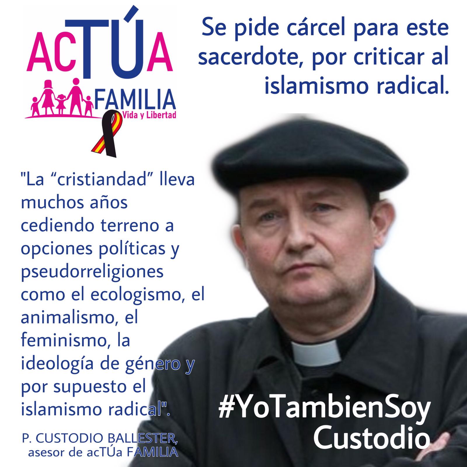Por ello, desde la asociación nacional “Actúa Familia” se ha iniciado una campaña de apoyo a los sacerdotes acusados. En especial al Padre Custodio Ballester, asesor de la asociación ciudadana, al que se quiere arropar a través de una campaña de hashtags en las redes bajo epígrafe #YoTambienSoyCustodio.