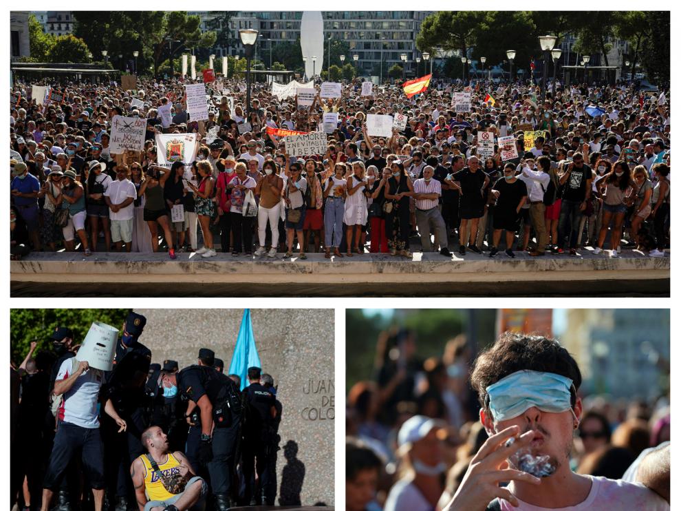 La protesta ha arrancado a las 18.00 con una multitudinaria asistencia en la céntrica plaza y una parte de los congregados que no portaba mascarilla en determinados momentos, pese a que su uso es obligatorio en espacios públicos de Madrid cuando no se puede mantener la distancia de seguridad. Su desarrollo ha generado expectación después de que el cantante Miguel Bosé haya mostrado su respaldo a la misma en varios mensajes en redes sociales.