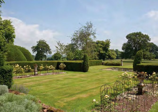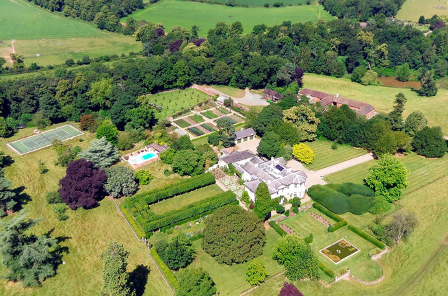 La finca de 81 hectáreas incluye una mansión con 11 dormitorios, una biblioteca, una piscina y un campo de críquet. Fue construida en 1814 y acoge otras cinco casas de campo dentro de la propiedad.