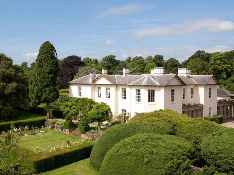 La finca de 81 hectáreas incluye una mansión con 11 dormitorios, una biblioteca, una piscina y un campo de críquet. Fue construida en 1814 y acoge otras cinco casas de campo dentro de la propiedad.